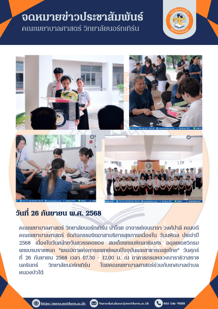 กราบขอบพระคุณท่านอธิการบดี รองอธิการบดี และท่านคณบดีคณะพยาบาลศาสตร์ วิทยาลัยนอร์ทเทิร์น ที่สนับสนุนการดำเนินงานในครั้งนี้ คณะพยาบาลศาสตร์ วิทยาลัยนอร์ทเทิร์น ความภาคภูมิใจของเราชาวนอร์ทเทิร์น ความภาคภูมิใจของจังหวัดตาก ศูนย์อพยพพักพิงชั่วคราวบ้านแม่หละตั้งอยู่ที่ ตำบลแม่หละ อำเภอท่าสองยาง จังหวัดตาก เป็นศูนย์พักพิงสำหรับผู้ลี้ภัยที่ใหญ่และเก่าแก่ที่สุดในประเทศไทย ปัจจุบันมีผู้อพยพ (ประมาณ 40,000 คน) ประกอบด้วยกลุ่มชาติพันธุ์ต่างๆ ที่ลี้ภัยจากเหตุการณ์การสู้รบและความไม่สงบในเมียนมาร์ เช่น กะเหรี่ยง พม่า ไทใหญ่ มอญ เป็นต้น โดยผู้ลี้ภัยกว่า 90% มีเชื้อสายกะเหรี่ยง โดยมีโรงพยาบาลท่าสองยางเป็นผู้รับผิดชอบดูแลด้านสุขภาพของประชาชน ซึ่งมีปัญหาหลากหลายด้าน ทั้งนี้มีอาสาสมัครผู้อพยพร่วมทำงานด้านสุขภาพ จำนวน 198 คน